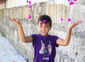 Keywords: child petal flying color fun freedom smile