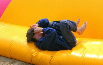 Keywords: child play concerns fun bouncy castle air air cushion soft joy happy look forward luck yellow