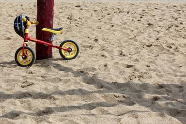 Keywords: child's bike bike sand helm bicycle helmet park playground