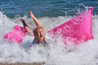 Keywords: child waves people sea girl uv-resistant clothing holiday ocean action