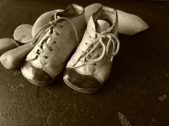 Keywords: childhood shoe shoelace leather leather shoes memory learn to walk growth fashion past worn footwear first steps development small child