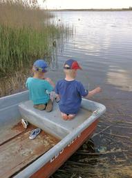Keywords: children boot lake fish nature catch fish boys water play
