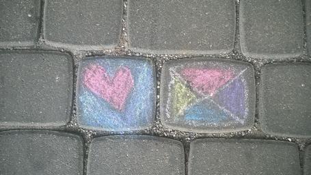 Keywords: children chalk road street chalk symbol children drawing drawing paving stones