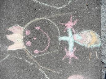 Keywords: children drawing princess street chalk painting human chalk fig art kids children child transient queen males happy cheerful color ground pavement sidewalk road painted