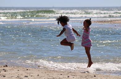 Keywords: children jump south africa beach girl hop sea surf fun black afro-american african africa