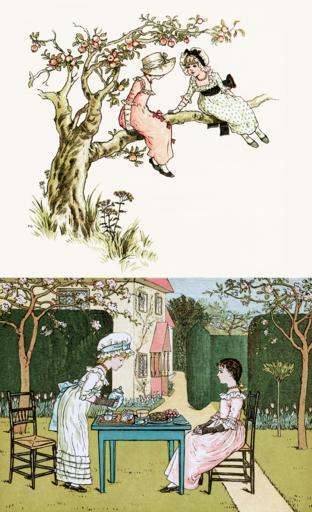 Keywords: children kids vintage art kate greenway tea friends apple tree tree girls childhood