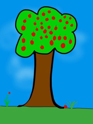 Keywords: children picture apple tree tablet cartoon apple sky meadow comic