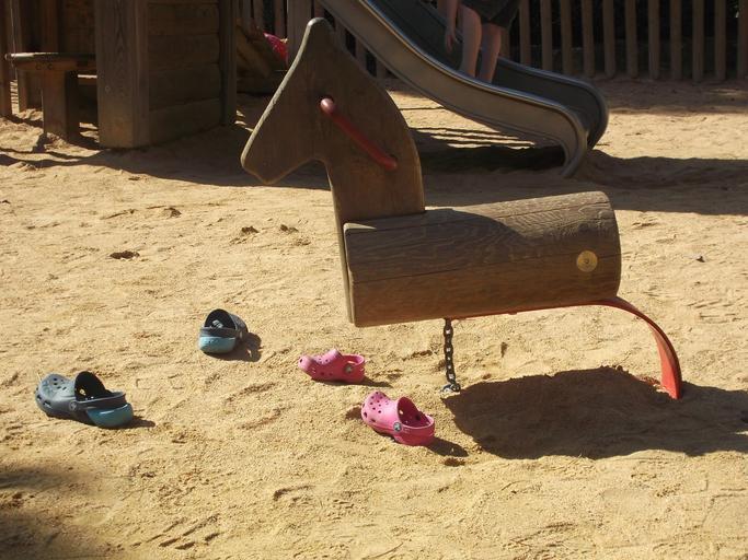 Keywords: children playing playground sand sandals childhood rocking horse leisure