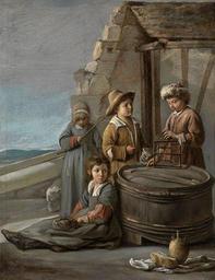 | Keywords: 'Children with a Cage of Birds and a Cat' by the Le Nain Brothers.jpg en Children with a Cage of Birds and a Cat by the Le Nain Brothers c 1646 oil on canvas 56 5 x 44 cm Staatliche Kunsthalle Karlsruhe Staatliche Kunsthalle Karlsruhe the Le Nain Brothers ~ 1646 PD-old-100 Paintings in Staatliche Kunsthalle Karlsruhe Le Nain Brothers |