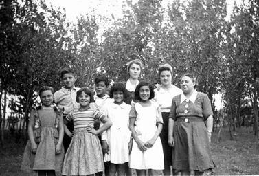 | Keywords: argentina mission camp children teacher blackandwhite groupshot people monochrome outdoor black and white Caption: Trenque Lauquen Children's Camp class No. 2 using the new Scottdale material in Spanish. Standing at far right is teacher Maria Cavadore; to her right are two helpers in her class and in the kitchen: Esther Lanik and Etelvina Strucchi of the T. Lauquen congregation. Citation: Mennonite Board of Missions. Photographs. Argentina, 1942-1963. IV-10-7.2 Box 1 folder 41, photo #22. Mennonite Church USA Archives - Goshen. Goshen, Indiana. Caption: Trenque Lauquen Children's Camp class No. 2 using the new Scottdale material in Spanish. Standing at far right is teacher Maria Cavadore; to her right are two helpers in her class and in the kitchen: Esther Lanik and Etelvina Strucchi of the T. Lauquen congregation. Citation: Mennonite Board of Missions. Photographs. Argentina, 1942-1963. IV-10-7.2 Box 1 folder 41, photo #22. Mennonite Church USA Archives - Goshen. Goshen, Indiana. |