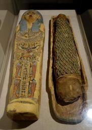 | Keywords: Child's Mummy and Sarcophagus, Egypt, 6th century BC, polychromed sycamore and fig wood, linen, faience beads - Fitchburg Art Museum - DSC08584.JPG en Exhibit in the Fitchburg Art Museum Fitchburg Massachusetts USA This artwork is old enough so that it is in the public domain Photography was permitted in the museum without restriction 2013-06-14 14 50 04 own Daderot cc-zero Ancient Egyptian art in the Fitchburg Art Museum Uploaded with UploadWizard Egyptian mummies Egyptian mummies in Fitchburg Art Museum Ancient Egyptian linen |