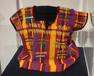 | Keywords: Child's or saint's huipil, Kaqchikel Maya, San Juan Sacateqequez, mid 20th century, cotton and silk - Textile Museum of Canada - DSC01144.JPG en Exhibit in the Textile Museum of Canada 55 Centre Avenue Toronto Ontario Canada Photography was permitted in the museum without restriction 2013-07-04 14 46 26 own Daderot cc-zero Uploaded with UploadWizard Maya textiles in the Textile Museum of Canada | ||||