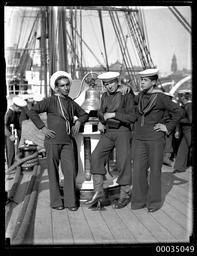 | Keywords: samuel j hood collection samueljhoodcollection baquedano corvette sydney harbour sydneyharbour harbour scenes harbourscenes circular quay circularquay people chilean “naval vessel” sailor sailors blackandwhite monochrome black and white The GENERAL BAQUEDANO moored at East Circular Quay on 16 July 1931 and the crew spent two weeks in Sydney. The ship had previously visited Sydney in 1903. In 1931, the vessel was considered obsolete as a fighting ship, but very useful as a training vessel. In naval categories, GENERAL BAQUEDANO is known as a corvette (in Spanish corbeta), which is defined as a flush-decked ship with one tier of guns, a type replaced by the modern cruiser. Fully-rigged, the vessel was fitted with triple-expansion engines as auxiliary, and had a displacement of 2,330 tons. The visit attracted significant public interest and the daily activities of the Chileans were reported in the Sydney Morning Herald. The crew played a soccer match against members of the HMAS CANBERRA crew, laid a wreath at the Martin Place cenotaph, displayed their rigging skills while aloft and opened their vessel to the public. Captain Alvarez also hosted visits by the Governor of NSW Sir Phillip Game, the Premier of NSW and the Lord Mayor. The departure of GENERAL BAQUEDANO from Sydney Harbour was quite eventful, with one rating attempting to desert the ship and swim ashore, two sailors being left at the dock and transported to the vessel by police launch and another bewildered Chilean was found wandering the streets. He was later reunited with his fellow sailors in Auckland after transport was arranged on a departing cargo ship. This photo is part of the Australian National Maritime Museum’s Samuel J. Hood Studio collection. Sam Hood (1872-1953) was a Sydney photographer with a passion for ships. His 60-year career spanned the romantic age of sail and two world wars. The photos in the collection were taken mainly in Sydney and Newcastle during the first half of the 20th century. The ANMM undertakes research and accepts public comments that enhance the information we hold about images in our collection. This record has been updated accordingly. Photographer: Samuel J. Hood Studio Collection Object no. 00035049 The GENERAL BAQUEDANO moored at East Circular Quay on 16 July 1931 and the crew spent two weeks in Sydney. The ship had previously visited Sydney in 1903. In 1931, the vessel was considered obsolete as a fighting ship, but very useful as a training vessel. In naval categories, GENERAL BAQUEDANO is known as a corvette (in Spanish corbeta), which is defined as a flush-decked ship with one tier of guns, a type replaced by the modern cruiser. Fully-rigged, the vessel was fitted with triple-expansion engines as auxiliary, and had a displacement of 2,330 tons. The visit attracted significant public interest and the daily activities of the Chileans were reported in the Sydney Morning Herald. The crew played a soccer match against members of the HMAS CANBERRA crew, laid a wreath at the Martin Place cenotaph, displayed their rigging skills while aloft and opened their vessel to the public. Captain Alvarez also hosted visits by the Governor of NSW Sir Phillip Game, the Premier of NSW and the Lord Mayor. The departure of GENERAL BAQUEDANO from Sydney Harbour was quite eventful, with one rating attempting to desert the ship and swim ashore, two sailors being left at the dock and transported to the vessel by police launch and another bewildered Chilean was found wandering the streets. He was later reunited with his fellow sailors in Auckland after transport was arranged on a departing cargo ship. This photo is part of the Australian National Maritime Museum’s Samuel J. Hood Studio collection. Sam Hood (1872-1953) was a Sydney photographer with a passion for ships. His 60-year career spanned the romantic age of sail and two world wars. The photos in the collection were taken mainly in Sydney and Newcastle during the first half of the 20th century. The ANMM undertakes research and accepts public comments that enhance the information we hold about images in our collection. This record has been updated accordingly. Photographer: Samuel J. Hood Studio Collection Object no. 00035049 |