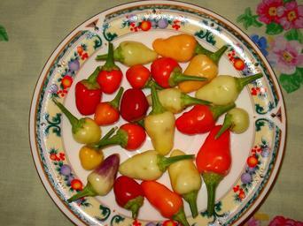 Keywords: Chillies Colorful.JPG en Chillies in different colores freshly plucked from my own garden own Miansari66 Food ingredients of Pakistan Spices of pakistan