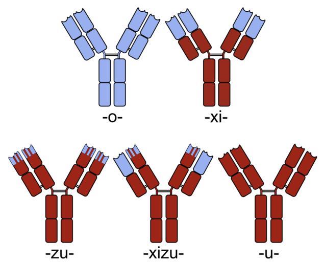 | Keywords: Chimeric and humanized antibodies.svg Comparison of monoclonal antibodies brown human blue non-human top row mouse chimeric bottom row humanized chimeric/humanized human The substems according to the nomenclature of monoclonal antibodies are shown below each antibody Antibody_je2 neutral svg cite web http //www who int/medicines/services/inn/generalpoliciesmonoclonalantibodiesjan10 pdf PDF General policies for monoclonal antibodies World Health Organization 2009-12-18 2010-02-14 13 34 UTC Antibody_je2 neutral svg Of this SVG version Roland Geider Ogre of the original PNG version User Je at uwo on http //en wikipedia org en wikipedia derivative work á¼ Î½Ï…Ï ÏŒÎ´Î·Ï„Î¿Ï‚ <span class signature-talk >talk</span> 150px 200px German text Inkscape Anypodetos original upload log This image is a derivative work of the following images File Antibody_je2 neutral svg licensed with PD-user-en PD-user-w 2007-08-23T20 46 42Z Ogre 120x95 11245 Bytes <nowiki> See other versions textbook http //www ncbi nlm nih gov/books/bv fcgi call bv View ShowTOC rid imm TOC depth 2 2007-08-23 Of this SVG version Roland Geider User Ogr</nowiki> Uploaded with derivativeFX Antibodies |