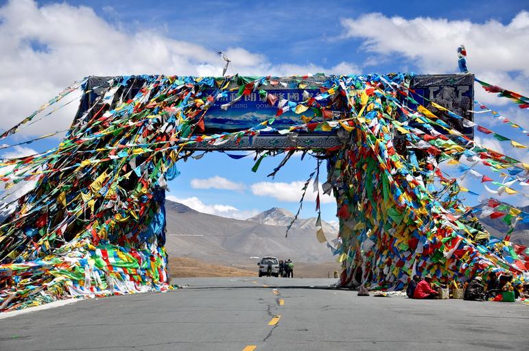 MAKE A MEME View Large Image china landscape scenic friendship pass ties bindings colorful entrance architecture sky clouds nature outside road highway mountains people vehicle