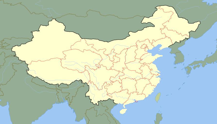 | Keywords: China locator map (geographical projection).svg en Location map of China a geographic projection latitudes/longitudes of edges top 55 0° N left 70 0° E right 140 0° E bottom 15 0° N own based on public domain data and maps made with Natural Earth shapefiles from http //www naturalearthdata com/downloads/ 10m-graticules-10 50m-admin-0-countries 10m-admin-1-states-provinces-lines-shp 10m-rivers-lake-centerlines-scale-ranks colours adapted from File China_blank_map svg for consistency 2010-06-26 Jappalang SVG blank maps of China Location maps of China |