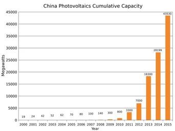 | Keywords: China Photovoltaics Installed Capacity.svg translate yes en Installed photovoltaics in China from 2000 to 2015 Sources 2013 http //www iea-pvps org/fileadmin/dam/public/report/statistics/PVPS_report_-_A_Snapshot_of_Global_PV_-_1992-2013_-_final_3 pdf 2014 http //www iea-pvps org/fileadmin/dam/public/report/technical/PVPS_report_-_A_Snapshot_of_Global_PV_-_1992-2014 pdf 2015 http //www iea-pvps org/fileadmin/dam/public/report/PICS/IEA-PVPS_-__A_Snapshot_of_Global_PV_-_1992-2015_-_Final_2_02 pdf 2015-05-11 own Delphi234 other versions cc-zero Solar energy in China Photovoltaic power statistics |