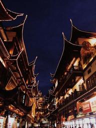 Keywords: china shanghai look up city god temple night light old buildings