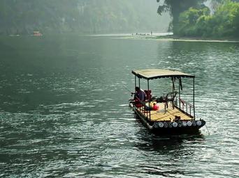 Keywords: china yangshuo li river mist dampness boat reflections water