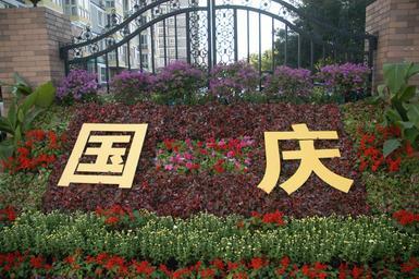 Keywords: China's 60th birthday floral design.JPG en Floral sign celebrating China's 60th birthday Beijing China Own Scott Meltzer 2009-09-13 Beijing Floral inscriptions Birthday flowers Design of China Flower beds