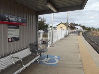 Keywords: 26 44S 150 37E Chinchilla railway station is located on the Western line in Queensland, Australia. It serves the town of Chinchilla. Opened 1878. attribution: TravellerQLD