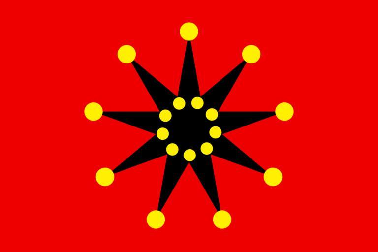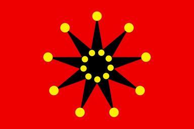 | Keywords: Chinese-army Wuhan flag (1911-1928) 18 dots.svg The banner of the Wuchang uprising zh 武昌起义 of October 10 1911 subsequently used as the flag of the army of the Republic of China ca 1913-1928 It appears on many varieties of Chinese currency issued during the 1910's and 1920's This image shows a variant of the flag with 18 yellow dots; for a variant with 19 dots see Image Chinese-army Wuhan flag 1911-1928 19 dots svg Own work based on various depictions including Image Republic of China Flags jpg ; see also Image WuchangUprising jpg This SVG file has been converted from the following PostScript code <pre> 306 396 translate 14 dup scale 94 0 0 setrgbcolor 19 5 13 25 moveto -39 0 rlineto 0 -26 rlineto 39 0 rlineto fill 0 1 8 pop 0 setgray -1 763287 0 moveto 0 10 lineto 1 76327 0 lineto fill 1 94 0 setrgbcolor 0 10 95 0 360 arc fill 40 rotate for 20 rotate 0 1 8 pop 0 2 7 0 633333 0 360 arc fill 40 rotate for showpage EOF</pre> 2007 AnonMoos v fl f insignia Army flags Black red yellow flags Flags of the Republic of China Beiyang Government Flags with one nine-pointed star centered Flags with one black star Flags with yellow disks Images with PostScript source code SVG flags - historical of China SVG flags - military of China War flags China 3 |