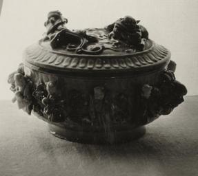 | Keywords: Chinese - Covered Bowl with Dragons and Figures - Walters 49893.jpg ca 1600 porcelain with colored glazes cm 10 4 accession number 49 893 28679 William T Walters date and mode of acquisition unknown Henry Walters city Baltimore Walters Art Museum Henry Walters Acquired by William T Walters Masterpieces of Chinese Porcelain Walters place of origin China Walters Art Museum license Art of China in Masterpieces of Chinese Porcelain Walters Chinese porcelain in the Walters Art Museum Porcelains of the Ming Dynasty Media contributed by the Walters Art Museum needs category review |