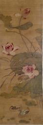 | Keywords: Chinese - Ducks in a Lotus Pond - Walters 3566.jpg The lotus flower has long been associated with Chinese notions of purity Growing from the muddy bottom of the pond the blossoms reveal a pure and radiant beauty The name of the flower he sounds like the Chinese word for harmony Paired with the male and female ducks these lotuses may have been painted to wish a couple harmony in their marriage century 17 18 ink and color on silk mounted on paper cm 123 1 43 1 accession number 35 66 37110 Panama-Pacific International Exposition China Pavilion San Francisco 1915 no 122 Henry Walters city Baltimore Walters Art Museum Henry Walters Acquired by Henry Walters 1915 Signature Spurious signature of Liu Yizhi Liu I-chih; Seal Fain seal in red lower right place of origin China Walters Art Museum license 2D Chinese paintings in the Walters Art Museum Bird-and-flower paintings of China |