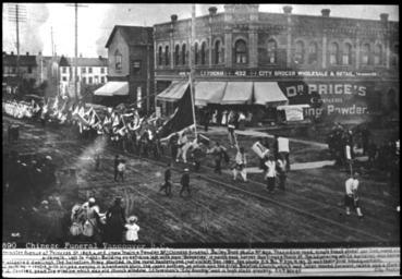 | Keywords: blackandwhite monochrome black and white DESCRIPTION: Chinese funeral procession on Westminster at Princess (now Main and Pender). The City Grocery Company at 450 Westminster is visible in the background. VPL Accession Number: 17064 Date: 1894 Photographer/Studio: Unknown SUBJECTS: Chinese - Funeral customs and rites, Funeral rites and ceremonies, Chinese Canadians Location: British Columbia - Vancouver - Main Street British Columbia - Vancouver - Pender Street More information on our historical photograph collection: www.vpl.ca/historicalphotos DESCRIPTION: Chinese funeral procession on Westminster at Princess (now Main and Pender). The City Grocery Company at 450 Westminster is visible in the background. VPL Accession Number: 17064 Date: 1894 Photographer/Studio: Unknown SUBJECTS: Chinese - Funeral customs and rites, Funeral rites and ceremonies, Chinese Canadians Location: British Columbia - Vancouver - Main Street British Columbia - Vancouver - Pender Street More information on our historical photograph collection: www.vpl.ca/historicalphotos |