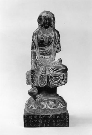 | Keywords: Chinese - Maitreya (?) Seated on a Lotus Throne - Walters 253.jpg This statue of Maitreya has an ushnisha The left arm and head are broken off and the head has been cemented back on There is a Manushhi Buddha on the back of the halo 716 stone with traces of color cm 39 3 accession number 25 3 8217 William T / Henry Walters Collection Baltimore date and mode of acquisition unknown Walters Art Museum Henry Walters Acquired by William T or Henry Walters Inscription On front and left side of the base; Number On sticker 5515; Number On sticker A099 Exhibition title unknown held at Morgan State College Morgan State College Baltimore 1960 place of origin China Walters Art Museum license Art of China in the Walters Art Museum Media contributed by the Walters Art Museum needs category review Buddhist sculptures of the Tang Dynasty Maitreya Chinese - Maitreya (?) Seated on a Lotus Throne - Walters 253.jpg This statue of Maitreya has an ushnisha The left arm and head are broken off and the head has been cemented back on There is a Manushhi Buddha on the back of the halo 716 stone with traces of color cm 39 3 accession number 25 3 8217 William T / Henry Walters Collection Baltimore date and mode of acquisition unknown Walters Art Museum Henry Walters Acquired by William T or Henry Walters Inscription On front and left side of the base; Number On sticker 5515; Number On sticker A099 Exhibition title unknown held at Morgan State College Morgan State College Baltimore 1960 place of origin China Walters Art Museum license Art of China in the Walters Art Museum Media contributed by the Walters Art Museum needs category review Buddhist statues of the Tang Dynasty Maitreya |