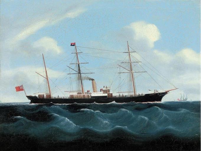 Keywords: Chinese School 19th century - The British steamer Aberdeen in Far Eastern waters with a junk off her port bow.jpg century 19 century 19 between 1881 1896 oil canvas cm 45 7 59 7 object history credit line accession number Christie's online 5387552 PD-Art-100 Aberdeen ship 1881 Paintings of ships |