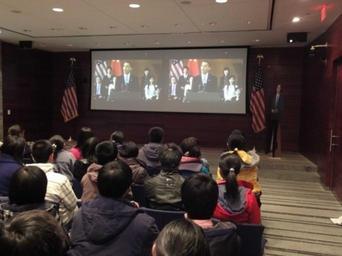 | Keywords: Chinese students at US Embassy.JPG en At a watch party at the U S Embassy in Beijing Chinese students focus on a live feed of the President ™s town hall in Shanghai http //www whitehouse gov/blog/2009/11/16/beijing-watch-party-presidents-town-hall White house staff 2009-11 PD-USGov Barack Obama in China 20091116 Barack Obama in 2009 20091116 |