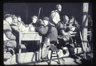 | Keywords: Chinese teashop opening off the street, Changde, Hunan, China, ca.1900-1919 (IMP-YDS-RG008-358-0008-0017).jpg en <br> Chinese teashop opening off the street Changde Hunan China ca 1900-1919 An old-fashioned teashop obviously in winter The Chinese teaship opening off the street was the Chinese equivalent of a sidewalk cafe Chinese men are sitting and drinking tea at tables in an open air teashop ; Captions for this set of lantern slides from the papers of Oliver and Jennie Logan American Presbyterian missionaries in Hunan were provided by their daughter Elsa Subject aat general views Photographer Unidentified Filename IMP-YDS-RG008-358-0008-0017 Geographic subject Hunan; China Subject unesco Customs and traditions; Food; Urban areas Part of collection International Mission Photography Archive ca 1860-ca 1960 Type images Part of subcollection Photographs from the Yale Divinity School Library New Haven Connecticut ca 1880-1950 Part of repository Yale Divinity Library Special Collections Repository name Yale University Divinity School Day Missions Library Format lantern slides Archival file impa_Volume289/IMP-YDS-RG008-358-0008-0017 tiff Repository address Yale University Divinity School Library 409 Prospect Street New Haven CT 06511 Part of series Oliver and Jennie Logan Papers Repository email Divinity Library yale edu Date created 1900/1919 Publisher of the digital version University of Southern California Libraries Format aat photographs Legacy record ID impa-m66281 Access conditions http //www library yale edu/div/reproductions html Coverage date 1900/1919 1900/1919 date created Unidentified http //digitallibrary usc edu/cdm/ref/collection/p15799coll123/id/51509 PD-old-70-1923 Magic lantern images Images from USC Digital Library uploaded by Fæ International Mission Photography Archive ca 1860-ca 1960 |