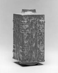 | Keywords: Chinese - Vase in the Shape of a Cong - Walters 491056.jpg This vase is an example of transmutation ware in blue green red and violet This form first appeared in Neolithic times and eventually it was said to symbolize the earth At the corners appear eight trigrams symbols of the eight elements- heaven earth water fire thunder mountain valley and wind between 1735 1795 stoneware with mottled glaze cm 14 4 accession number 49 1056 8763 William T / Henry Walters Collection Baltimore date and mode of acquisition unknown Walters Art Museum Henry Walters Acquired by William T or Henry Walters Reign Mark Qianlong Ch'ien-lung Masterpieces of Chinese Porcelain Walters place of origin Guangdong Kwangtung China Walters Art Museum license Art of China in Masterpieces of Chinese Porcelain Walters Chinese ceramics in the Walters Art Museum Chinese stoneware Ceramics of the Qing Dynasty |