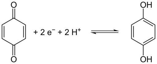 Keywords: Chinon Hydrochinon.svg Gleichgewicht von Chinon und Hydrochinon Equilibrium of quinone and hydroquinone own 2007-01-10 NEUROtiker Chemical equilibria Hydroquinone Benzoquinone