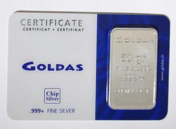Keywords: Chip silver bullion bar.jpg en silver bullion bar with assay card own Kjmonkey 2011-01-05 Cc-zero trademark Silver Goldaş