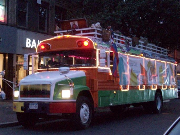 | Keywords: Chiva Queens Nueva york.jpg en Chiva Bus during colombian independence celebration in Queens New York es Chiva Colombiana durante la celebracion de independencia por parte de la comunidad colombiana en el distrito neoyorquino de Queens Estados Unidos Mas especificamente en el barrio Jackson Hights tambien llamado la pequeña Colombia en la Colombian Way calle Colombia own Googlito 2009-08-01 La chiva es un medio de transporte en zonas rurales de Colombia Chivas bus Jackson Heights Queens Buses in Queens New York City Freightliner FS-65 buses Blue Bird conventional buses Former school buses |