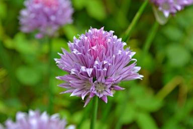 Keywords: chive flowers chive flowers herbs vegetables purple lavender color spring summer plants garden nature edible flowers