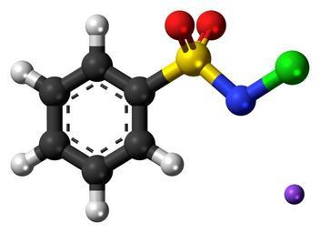 | Keywords: Chloramine-B-3D-balls.png Ball-and-stick model of the chloramine B molecule a disinfectant Colour code 505050 Carbon C black<br> F0F0F0 Hydrogen H white<br> F51E1E Oxygen O red<br> 3C50FA Nitrogen N blue<br> AA5EF2 Sodium Na lilac<br> FAEB00 Sulfur S yellow<br> 14F014 Chlorine Cl green<br> 2011-05-31 own DS Visualizer Jynto talk Space-filling version cc-zero Benzenesulfonamides Ball-and-stick models Nitrogen-chlorine compounds Sodium salts of organic compounds Phenyl compounds Images by Jynto |