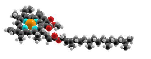 | Keywords: Chlorophyll spacefilling model.jpg en A spacefilling model of a chlorophyll-a molecule Black balls are carbon atoms white is hydrogen red is oxygen turquoise is nitrogen and orange is magnesium own Diplodocus 2010-02-10 Public domain Chlorophyll |