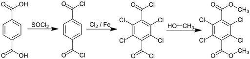 Keywords: Chlorthal Synthesis V.1.svg Chlorthal_Synthesis own 2013-08-28 Jü Cc-zero Herbicide syntheses Tetrachlorobenzenes Methyl esters Terephthalate esters Terephthalic acids Acyl chlorides