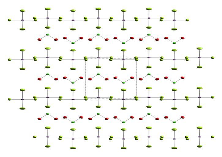 | Keywords: Chloryl-hexafluoroantimonate-xtal-2008-CM-3D-ellipsoids.png Thermal ellipsoid model of the crystal structure of chloryl hexafluoroantimonate ClO<sub>2</sub>SbF<sub>6</sub> Colour code Chlorine Cl green Oxygen O red Antimony Sb purple Fluorine F yellow-green Crystal structure from http //dx doi org/10 1021/ic800929h Inorg Chem 2008 47 8343 8356 Image generated in http //www crystalmaker com/ CrystalMaker 8 2 Own 2010-06-12 Ben Mills Benjah-bmm27 Images by Ben Mills Crystal structures of chloryl compounds |
