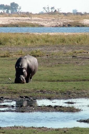 Keywords: Chobe National Park Riverfront Portrait.jpg Portrait of terrain with river Chobe riverfront Chobe National Park Botswana Own 2007-08-07 Cretep Chobe National Park Hippopotamus amphibius