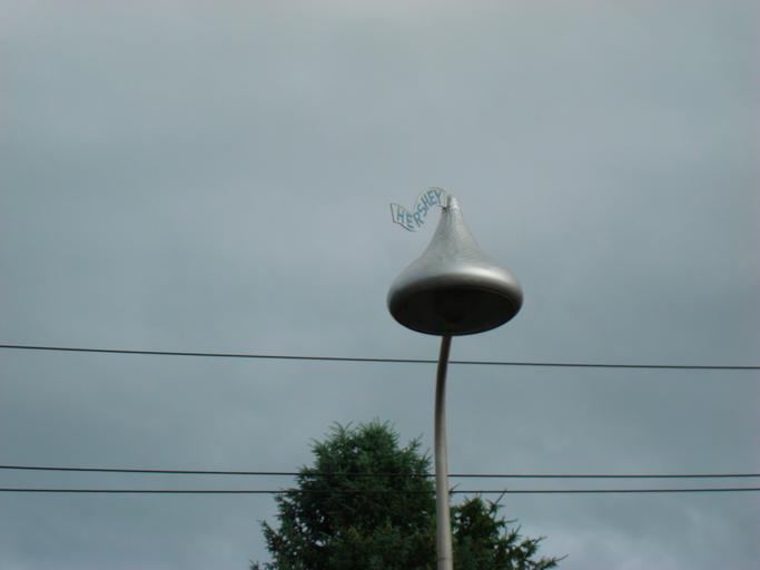 Keywords: Chocolate Kiss streetlight-wrapped, Hershey PA.jpg Chocolate Kiss streetlight on Chocolate Avenue wrapped and with the Hershey name tag Some of the Kiss streetlights are brown unwrapped and some are silver wrapped The wrapped ones have the nametag Hershey Pennsylvania USA Rlevse 2009-06-21 Rlevse Trademark <b style color 060; ><i>R</i>levse</b> ¢ <span style color 990; >Talk</span> ¢ </span> 2009-06-27 Photographs by Rlevse Hershey Pennsylvania Street lights in Pennsylvania Hershey's Kisses |