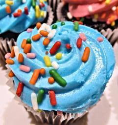 Keywords: chocolate mini cupcake blue frosting sprinkles sweet food