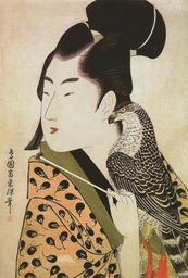 | Keywords: Choensai eishin falconer.jpg de Falkner Japanischer Falkner mit Habicht auf der linken Hand zur Zeit der Kansei-Periode 1789-1801 Auf seinem Haori berwurf in Form eines kurzen Kimonos erkennt man ein feines Auberginenmuster und das Wappen des Fuji en Falconer Japanese falconer during the Kansei period 1789-1801 with a goshawk sitting on his left hand His Haori short Kimono shows an eggplant pattern and the emblem of the Fuji mountain Own scan from the book Gabriele Fahr-Becker Ed Japanische Farbholzschnitte Taschen Verlag Köln 2007 Chōensai Eishin 1789 - 1801 Kansei period PD-Art Ukiyo-e of beautiful women Falconers |