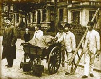 | Keywords: Choleradesinfektin-1892.gif Desinfektionskolonne mit Chlorkalkkarren während der Cholera-Epidemie in Hamburg 1892 http //www stolten org/Stammbaum/Geschichten/Cholera/cholera html / Von Staro1 in die deutschsprachige Wikipedia geladen 1892 author PD-Old PD-old picture manager bright F1jmm 1892 Hamburg cholera outbreak |