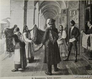 | Keywords: Choosing a Dowry (Niva magazine, 1911).jpg Watermark Niva No 10 of 1911 The actual painting is located at the Veliky Ustyug Museum of History Art and Architecture ru Реп одукция ка тины иколая Бек яшева «Выбо п иданого» Опубликована в жу нале « ива» 10 за 1911 год со следующим текстом «Хлопотливое и муд еное дело выбо п иданого Разве шуточное дело выб ать из целого во оха шалей платков и всяких мате ий то что п ишлось бы по вкусу и вместе с тем по ка ману Занимательную и не лишенную мягкого юмо а сценку в этом оде изоб ажает Бек яшев получивший за свою ка тину звание художника» Сама ка тина находится в Великоустюгском музее 2008-07-07 01 42 22 Downloaded from http //artru info/il/45591/ar/1802/ Выбо п иданого жу нал ива 1911 г at ArtRu info The direct link http //artru info/il/img php img 45591 702 × 600 image Creator Nikolay Bekryashev other versions Custom license marker 2016 06 17 PD-Russia 1910 paintings from Russia Images from Niva magazine 1911 Dowry Nikolay Bekryashev |