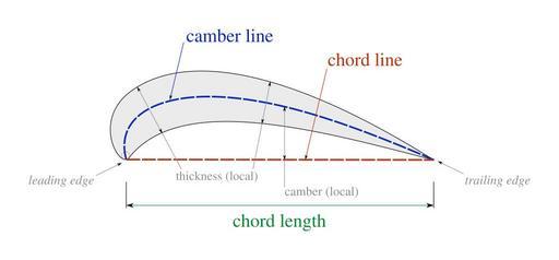 | Keywords: Chord length definition (en).svg chord length on an airfoil The chord spans from the leading edge surface point of minimum radius<ref> cite book Aerodynamics for Engineering Students Houghton E L ; Carpenter P W 5 2003 Butterworth Heinmann 0-7506-5111-3 p 18</ref> to the trailing edge The chord length is the length of that segment rather than that of the airfoil itself The airfoil represented here displays very high relative thickness and camber; it is used in turbine blades that operate at angles of attack exceeding 90° thumb Different definitions for the thickness Note that the thickness can be defined in several ways see File Airfoil thickness definition svg The so-called American convention is used here references 2011-11-27 own created with Inkscape Olivier Cleynen Other versions/Chord length definition cc-zero Uploaded with UploadWizard Diagrams of airfoil geometry Aeronautical vocabulary Aerodynamics diagrams |